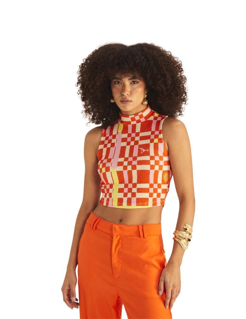 Regata Feminina Slim Gola Alta Estampada • Sommer Laranja