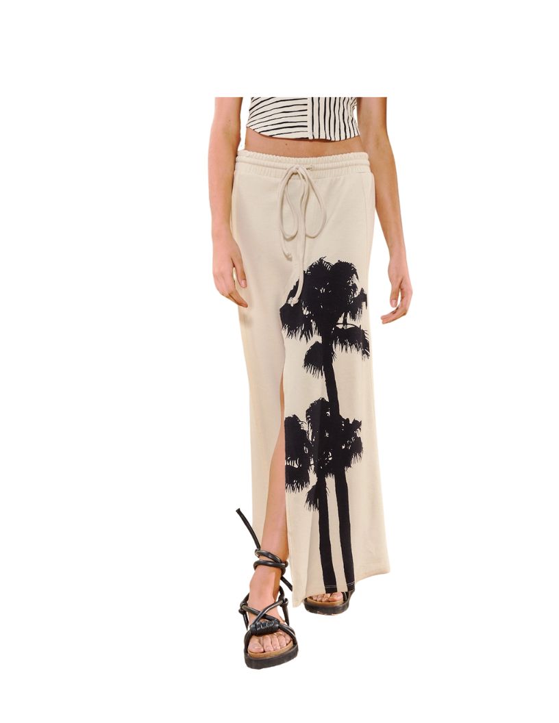 Saia Longa Com Fenda E Estampa De Coqueiro • Open Bege