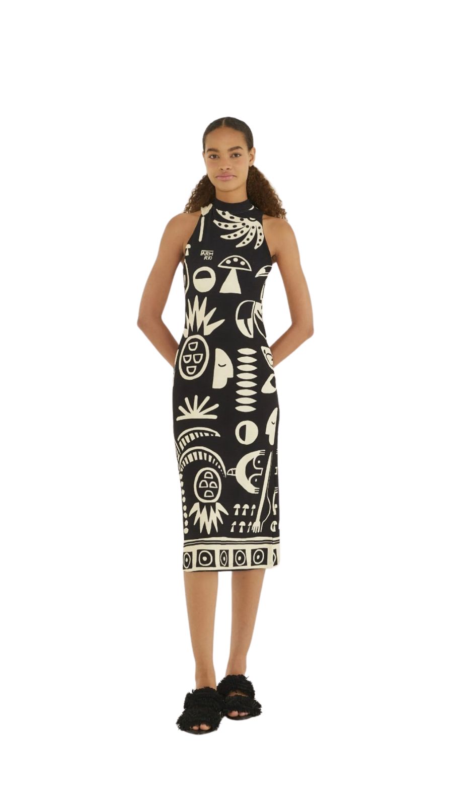 vestido midi estampado lenço tropicano. apresenta alças finas e decote reto que proporcionam um visual moderno e atemporal. a modelagem fluida garante conforto, enquanto a estampa única valoriza qualquer look. perfeito para eventos casuais ou um passeio descontraído. FARM RIO original - alto inverno 25.